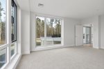 Both carpeted bedrooms have large closets and windows with views of the woods. The second bedroom can be used as a home office.