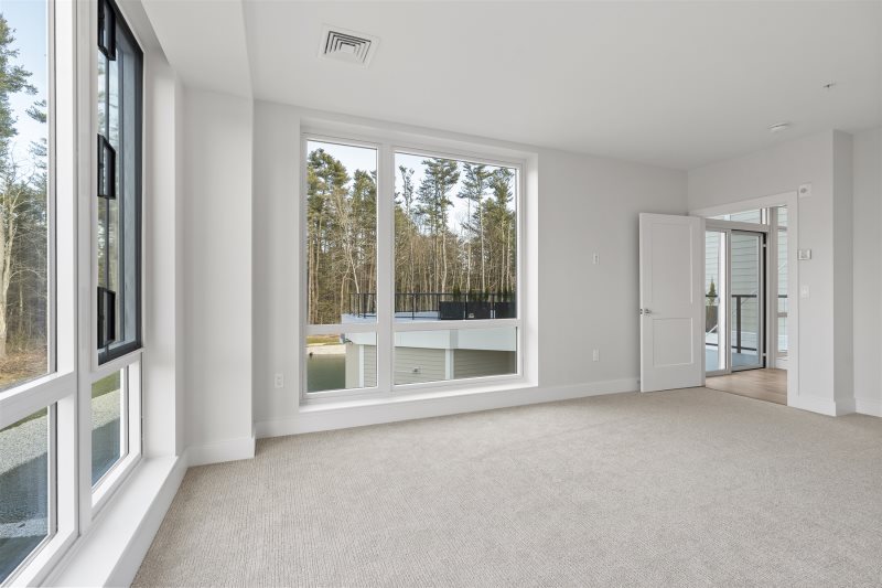 Kitchen & Living: The open-concept living and dining area is ready for your touches for entertaining, lounging and enjoying Maine’s best in local foods. With hardwood floors, inset gas fireplace and sliding glass doors that seamlessly extend your living space, this will be a favorite area for hanging out. The kitchen is a chef’s dream with stainless appliances, granite counters and breakfast bar, white custom cabinetry and plenty of island storage and a pantry.